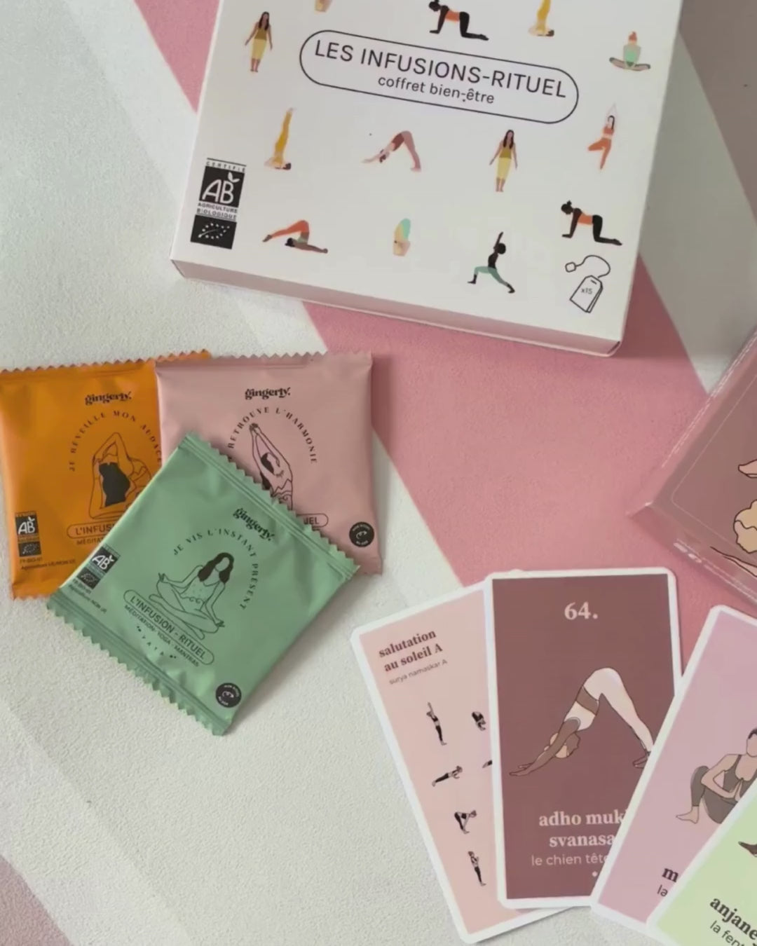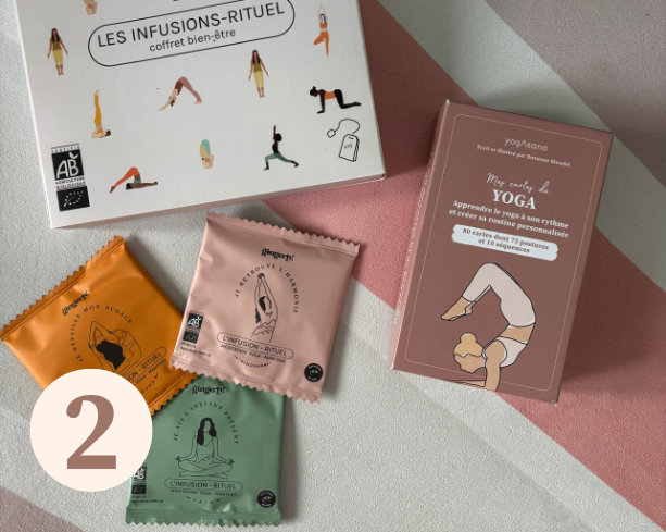 -Le Coffret Tisane Anti-Stress Bio & Bien-Être (15 sachets répartis sur 3 infusions) — un moment de douceur chauffante pour apaiser l’esprit avant ou après la pratique.